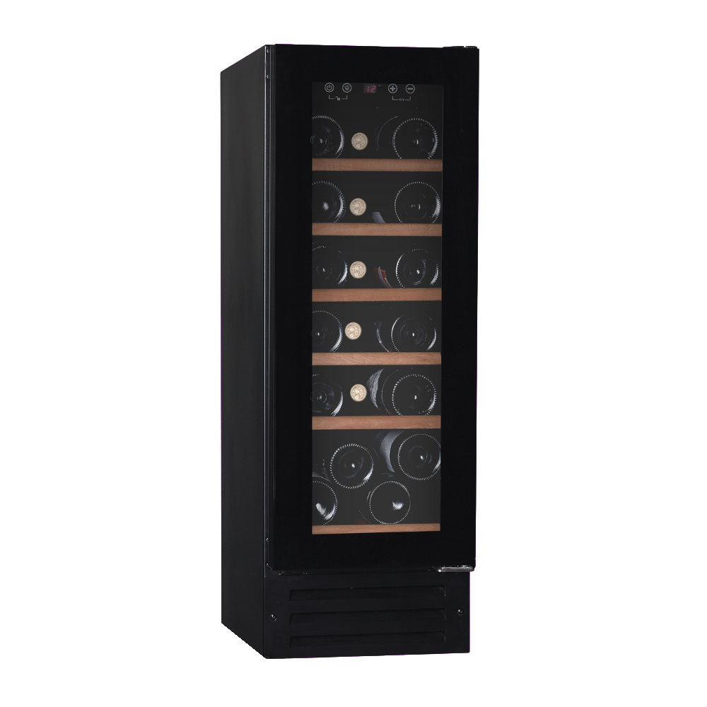 A Winespot Glass Series 19 model with a single temperature zone and a modern look rimless glass door is there to serve your needs in office or cozy home. Looks aside, this appliance will let your wines mature to perfection and protect your investment.